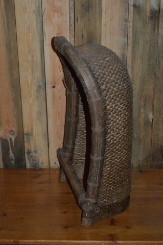 Tegenwoordig is het een schitterend decoratiestuk dat moeiteloos warmte en karakter toevoegt aan elk interieur. Gebruik hem voor een boeket droogbloemen, als wanddecoratie of als stijlvol accent op een kast of tafel. De zichtbare gebruikssporen vertellen het verhaal van een mand die daadwerkelijk dienst heeft gedaan — precies dat maakt hem zo charmant en uniek. Een waar stukje ambacht en geschiedenis voor in huis.