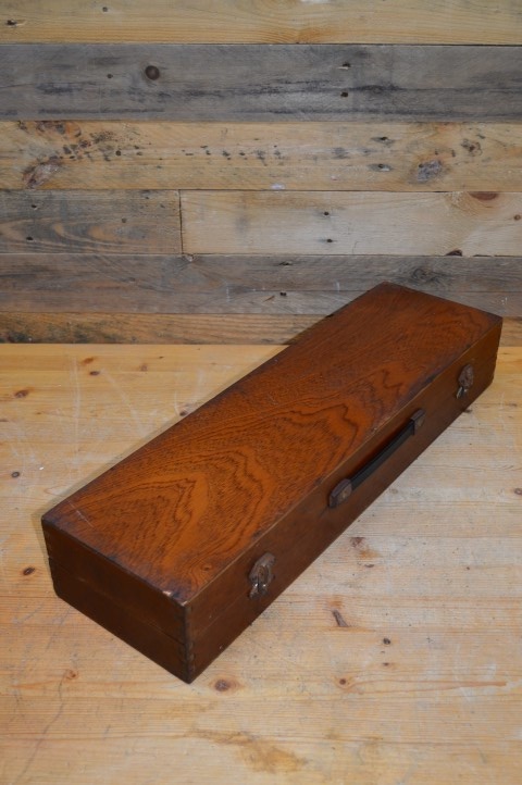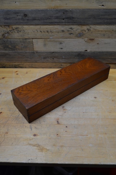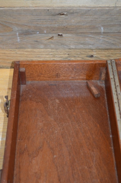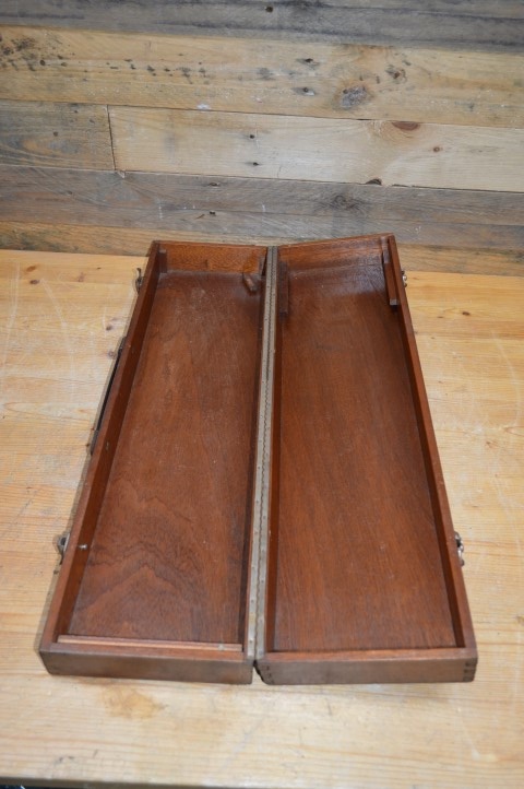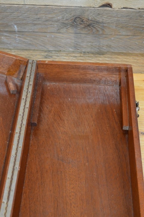 Opbergkistje gemaakt van mahonie. Voor het opbergen van een gezelschapsspel of de schilderskwasten van een kunstschilder. Of als decoratie gewoon omdat het een mooie kist is.