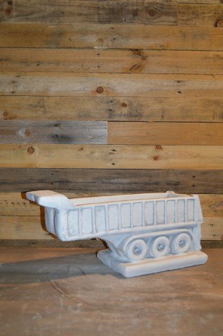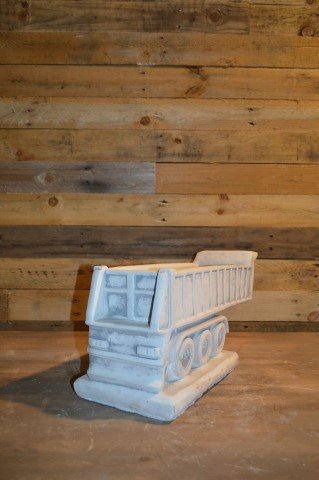 Deze betonnen zandwagen kan gebruikt worden als bloembak of sierlijk tuinbeeld. Dankzij het stevige ontwerp kan het zowel binnen als buiten geplaatst worden. Optioneel is uitbreiding met een vrachtwagen, waardoor het een complete truck met oplegger als plantenbak wordt. Een creatief en charmant decoratief object voor tuin of interieur.