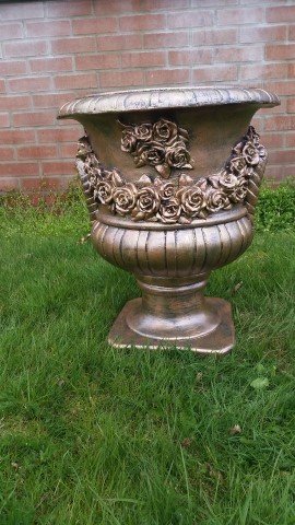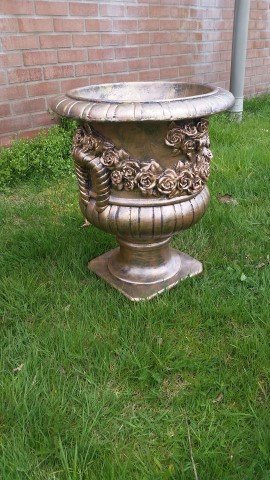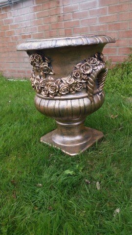 Het ornament is uitstekend geschikt als bloempot of bloembak en vormt een prachtige basis voor een kleine rozenstruik of andere planten. Plaats de vaas op een sokkel of pilaar en de verfijnde details vallen nog beter op. Dankzij het robuuste beton is de vaas bestand tegen alle seizoenen en blijft hij jarenlang mooi in je tuin.