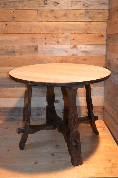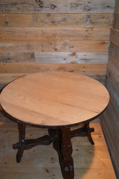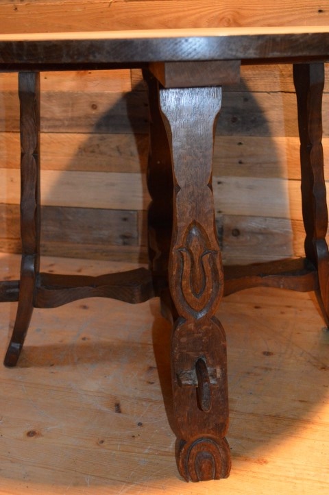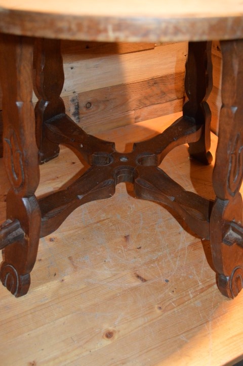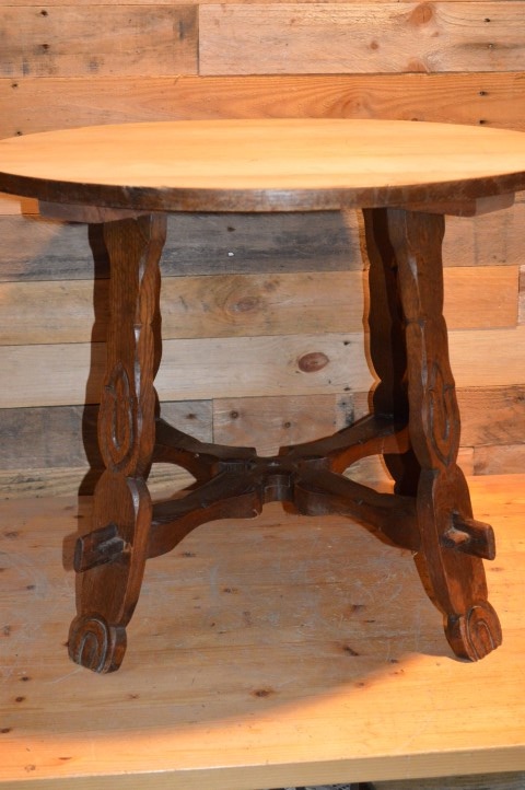 Een mooi tafeltje met bewerkte poten en een midden kruis waardoor het zeer stabiel is.