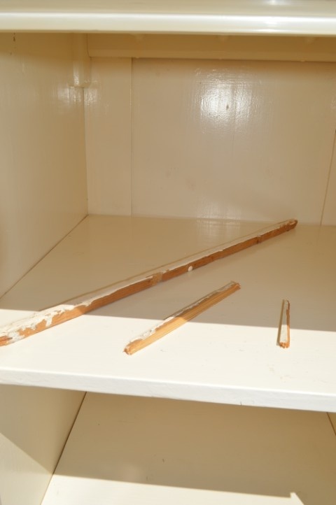 Het is een retro kast met gebruikssporen. De panelen uit de deuren en een paar lijstjes die gelijmd moeten worden zitten er los bij. Het is dus een mooie kast maar er zit een beetje opknapwerk in.