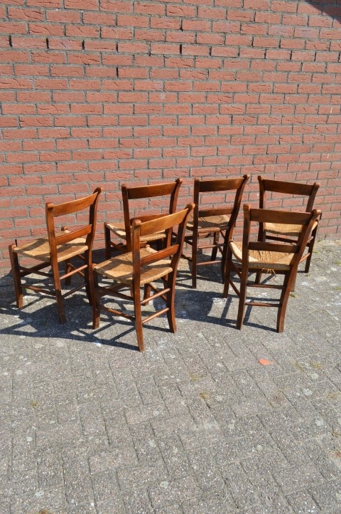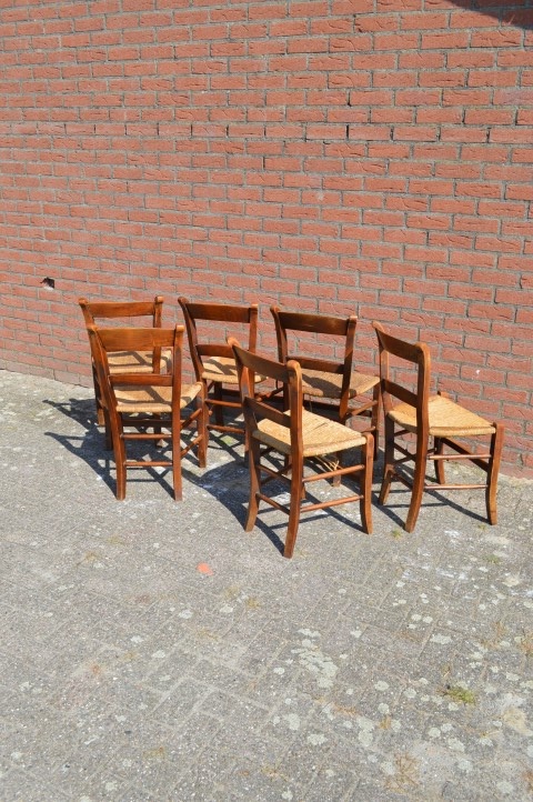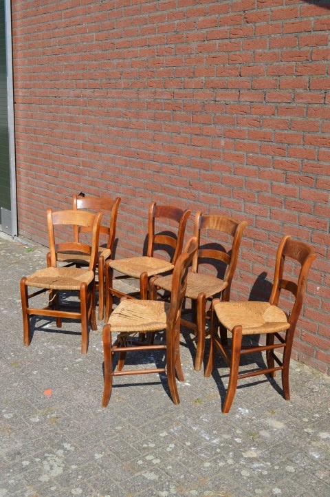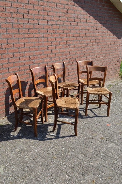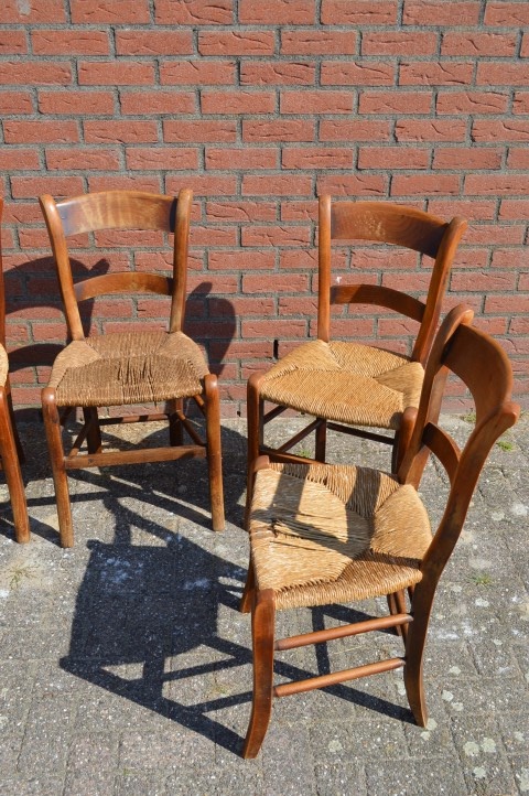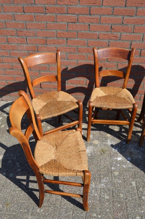 De stoelen hebben gebruikssporen. De frames zijn wat wiebelig en de matten matig. Een ideale set stoelen voor iemand die een set ouderwetse keukenstoelen of eetkamerstoelen in een klassieke stijl zoekt maar ze ook graag opknapt om daarna comfortabel te kunnen zitten.