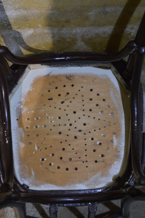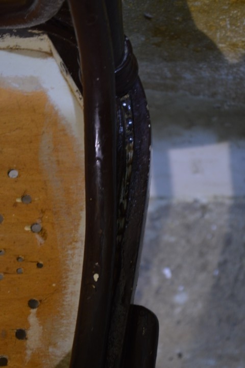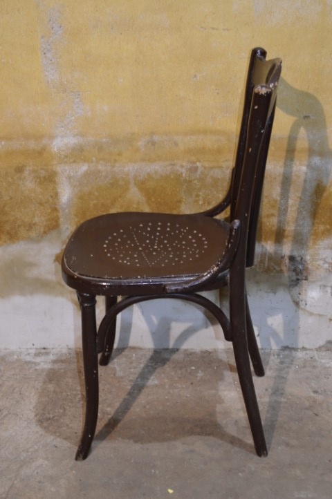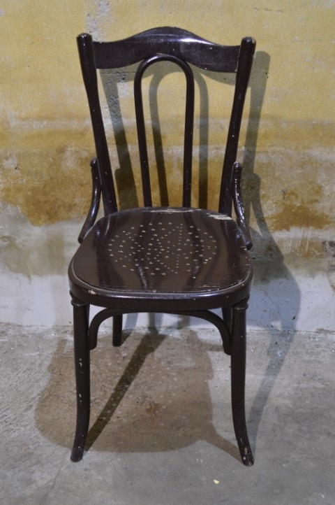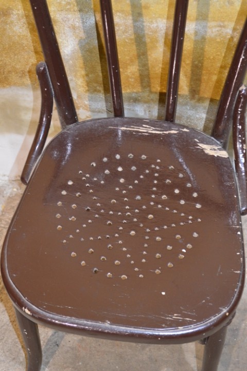 De stoel is tweedehands en heeft gebruikssporen. Daarnaast is hij in het verleden geschilderd.