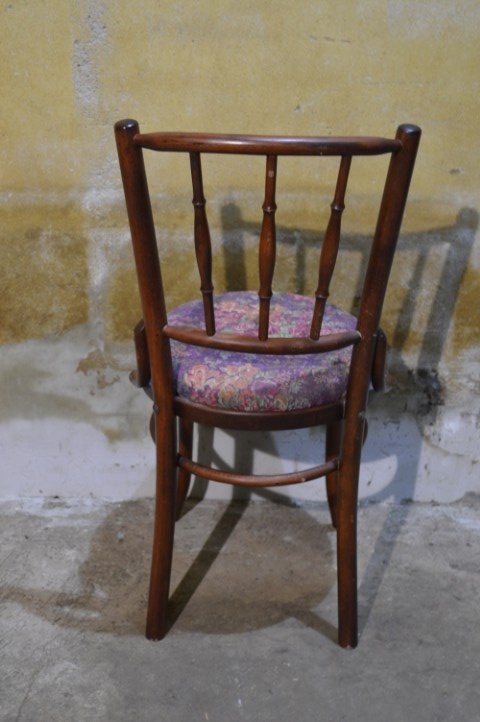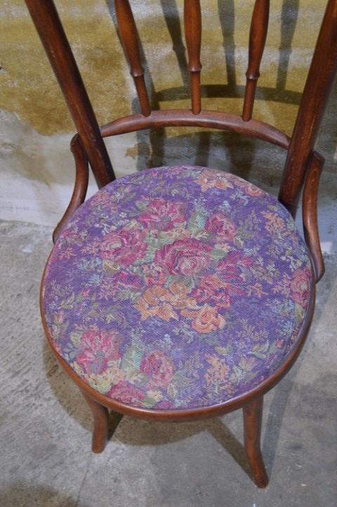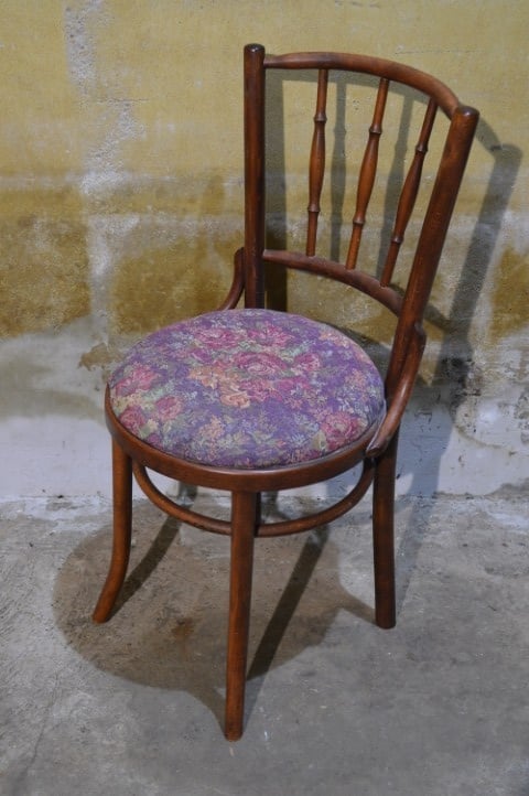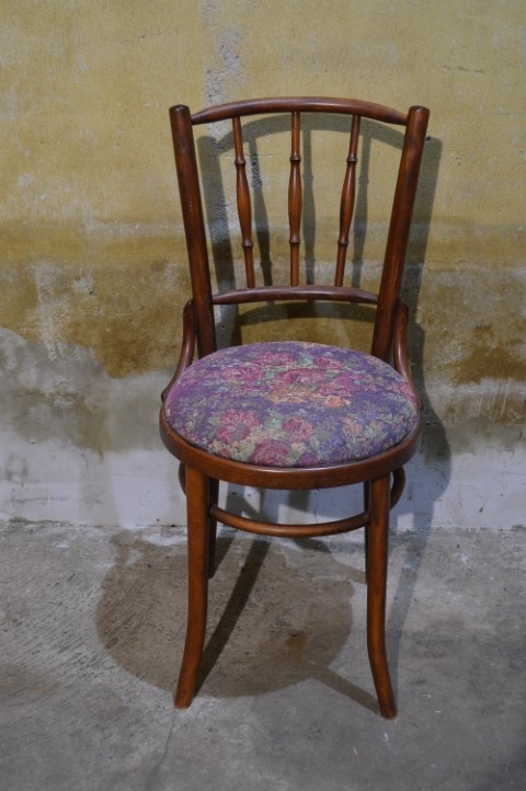 Deze vintage beukenhouten bistrostoel in Thonet stijl is een charmante verschijning met een duidelijke knipoog naar de Art Nouveau periode. Het model is gebaseerd op het ontwerp van Michael Thonet en dateert waarschijnlijk uit de jaren 50-60. De elegante gebogen rugleuning en het slanke silhouet geven de stoel een lichte en verfijnde uitstraling. De zitting is opnieuw bekleed, waardoor hij weer fris oogt en klaar is voor gebruik. Mooi als eetkamerstoel, bijzetstoel of als sfeervol accent in een hal of slaapkamer.