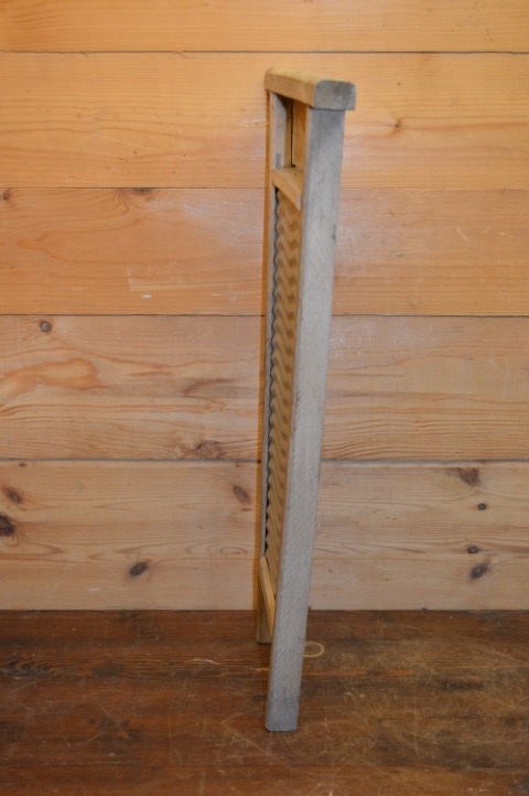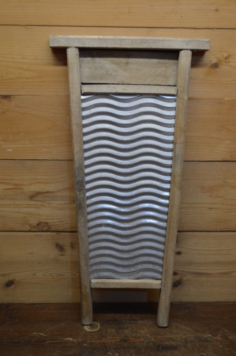 Breng authentieke boerencharme in huis met dit kleine vintage wasbord van beukenhout en metaal. Ooit een onmisbaar huishoudhulpmiddel, nu een prachtig rustiek decorstuk voor keuken, wasruimte of hal. Het houten frame en het metalen schuuroppervlak tonen natuurlijke veroudering en patina, wat dit stuk zijn karakter en nostalgische uitstraling geeft. Ideaal voor liefhebbers van landelijke, shabby-chic of primitieve interieurs. Een uniek verzamelobject dat warmte en historie toevoegt aan je interieur.
