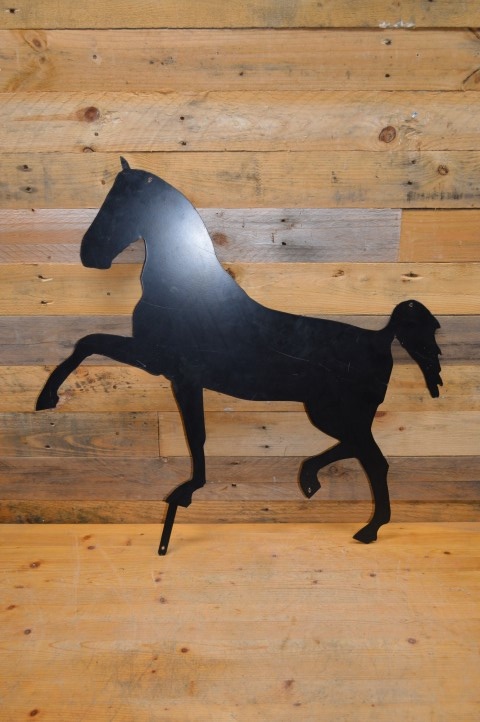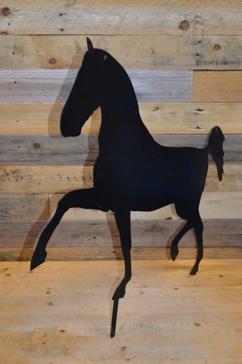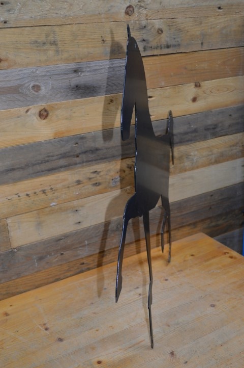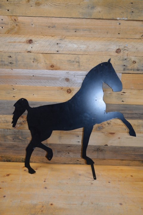 Dit mooie paard is gemaakt uit een groot stuk metaalplaat en gelakt in een glanzende zwarte kleur, wat deze metalen plaat tot een prachtige wanddecoratie maakt die bij uitstek geschikt is voor paardenliefhebbers. Deze grote decoratie beschikt daarnaast over voorgeboorde gaatjes waarmee het geheel aan de muur kan worden opgehangen en is erg leuk om bijvoorbeeld een kale muur mee op te fleuren.