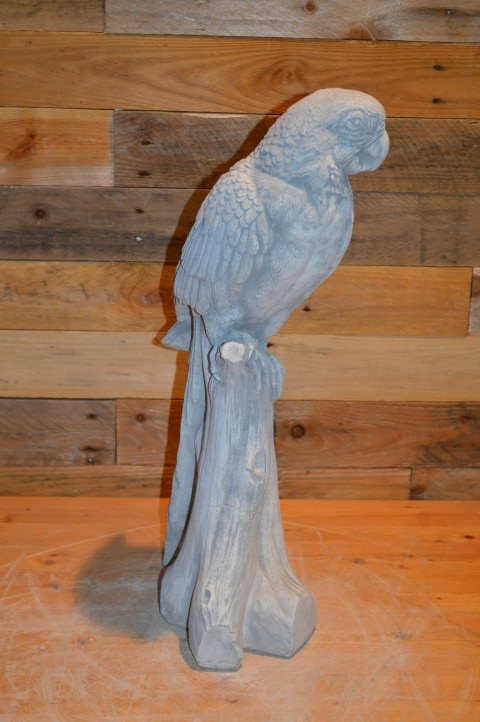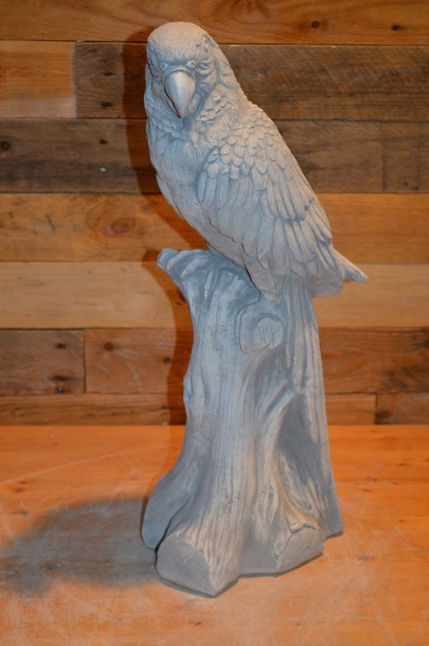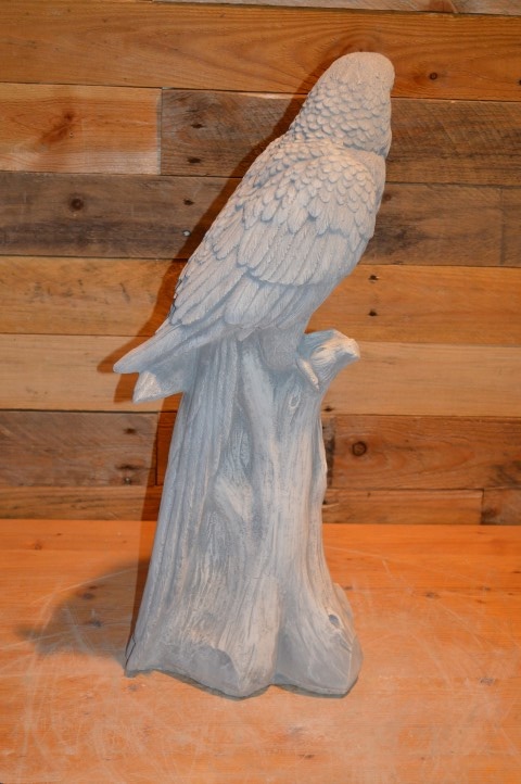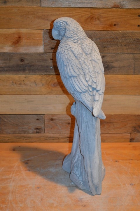 Papegaai op boomstronk is een prachtig decoratief beeld van beton dat zowel binnen als buiten schittert. De gedetailleerde papegaai, zittend op een robuuste boomstronk, is natuurgetrouw vormgegeven en kan desgewenst in bonte kleuren worden geschilderd. Dit betonnen beeld is een opvallende aanvulling op uw tuin, balkon, serre of interieur. Ideaal voor wie van tropische flair houdt met een duurzame twist.