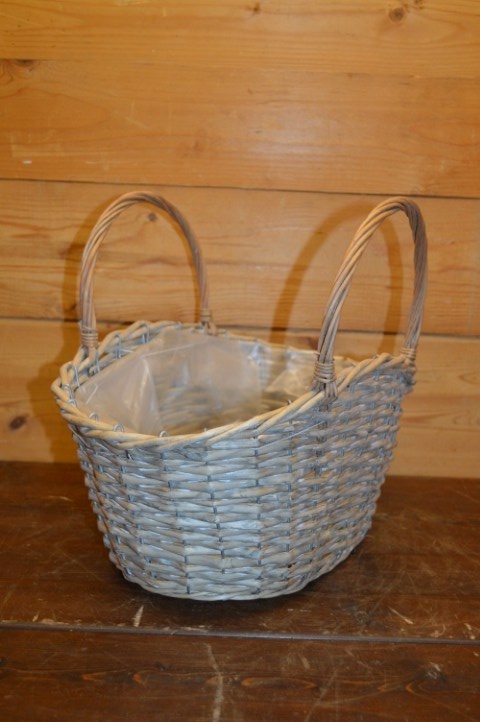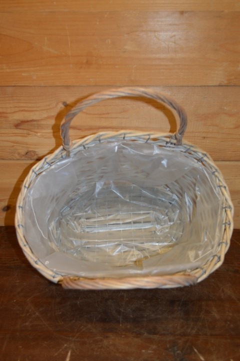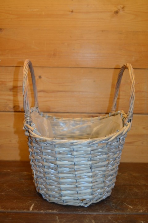 Dit plantenmandje van riet heeft een stevig metalen frame binnenin en een plastic binnenvoering, waardoor het zowel praktisch als stijlvol is. De lichtwitte buitenkant geeft het mandje een chic uiterlijk dat prachtig past in ieder interieur. Het tweedehands mandje heeft lichte gebruikssporen, wat bijdraagt aan zijn authentieke vintage charme. Ideaal voor het decoratief opbergen van bloemen, planten of kleine spullen.