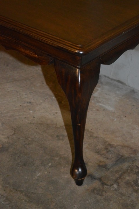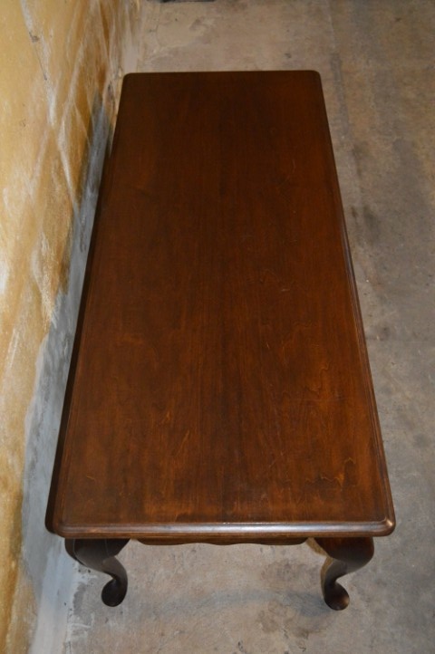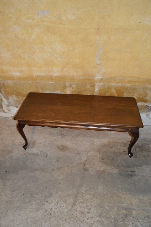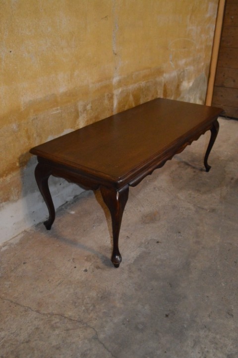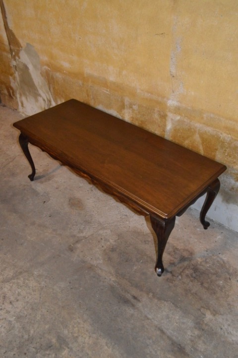 Elegante vintage Queen Anne salontafel met sierlijke poten en een klassieke uitstraling. Deze tafel staat nog stevig op haar karakteristieke gebogen poten en verkeert in goede staat. De verfijnde details en elegante vormgeving geven het meubel een tijdloos en chic karakter, perfect passend bij zowel klassieke als landelijke interieurs.