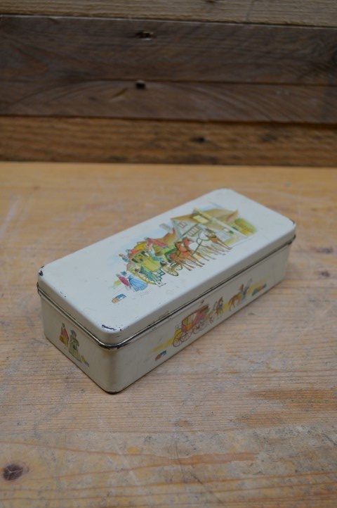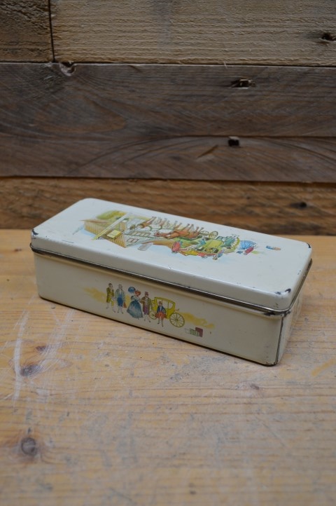 Dit ouderwetse bewaarblik heeft wel een aantal gebruikssporen maar verkeert verder in goede staat.