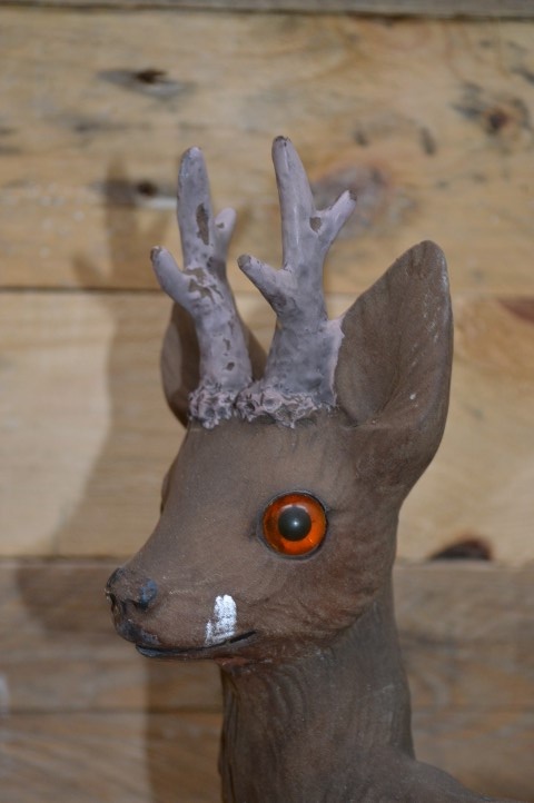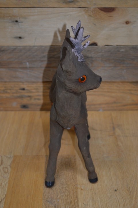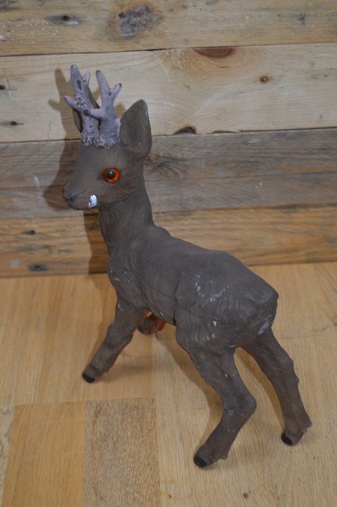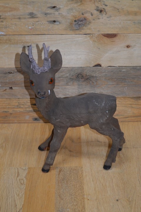 Mooi, niet allerdaags, hert van ZeHo Germany. Geproduceerd in eind jaren 50 begin 60. Oorspronkelijk is de ree geproduceerd als decoratie en etalage materiaal. Een prachtig model hert gemaakt van van kunststof met een viltachtige stof daarover heen.