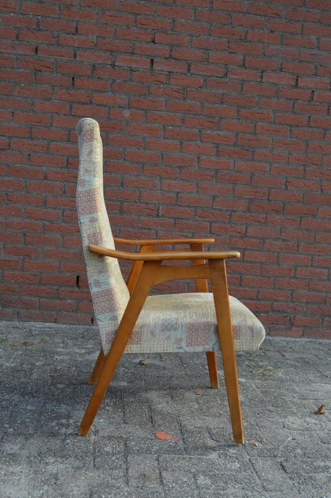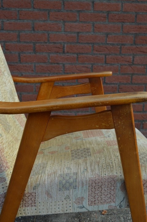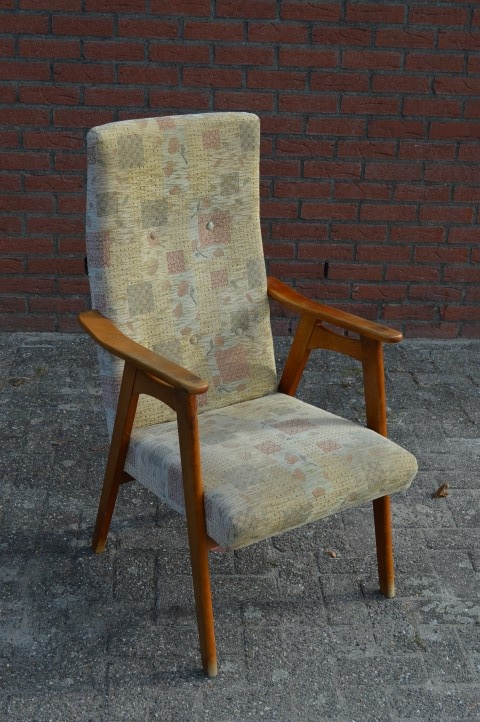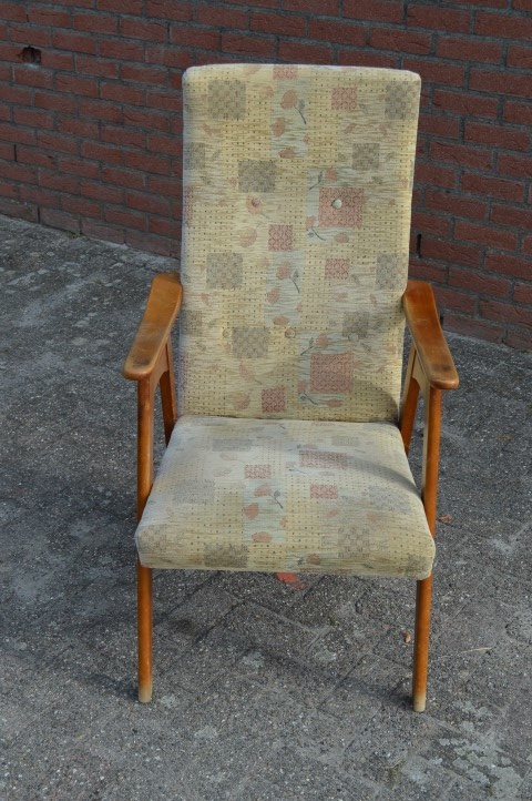 De fauteuil heeft door de jaren heen wel wat gebruikssporen opgelopen, maar verder is deze mooie houten stoel met armleuningen nog steeds in goede staat en kan deze gerust nog jaren mee.