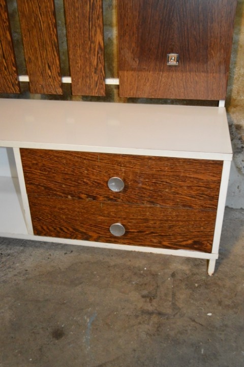 Het betreft een tweedehands designmeubel met duidelijke gebruikssporen. De spiegel ontbreekt, in de lade zit een vlek en één pootje is beschadigd. Ondanks deze punten blijft het een karaktervol en decoratief halmeubel, zeer geschikt voor de liefhebber van authentiek vintage design of een restauratieproject.