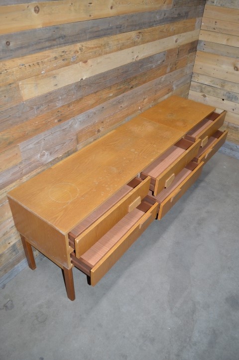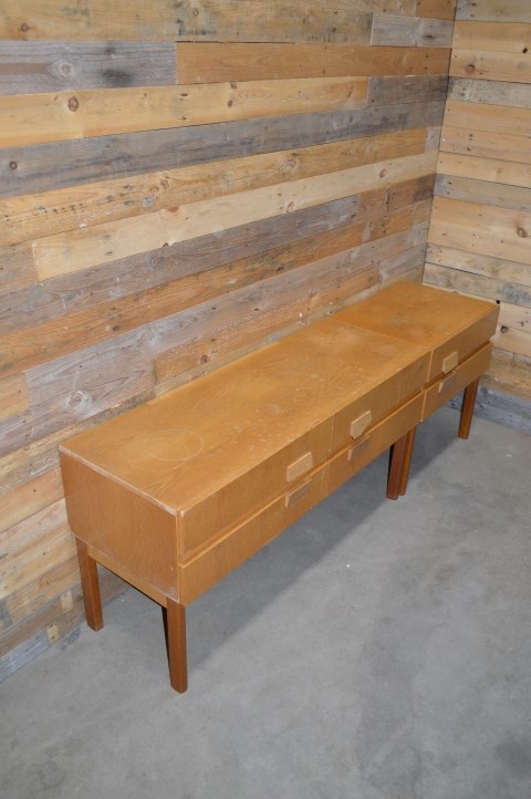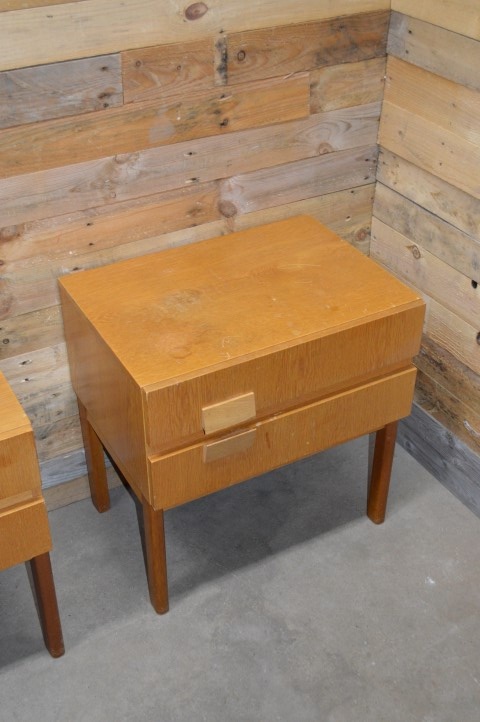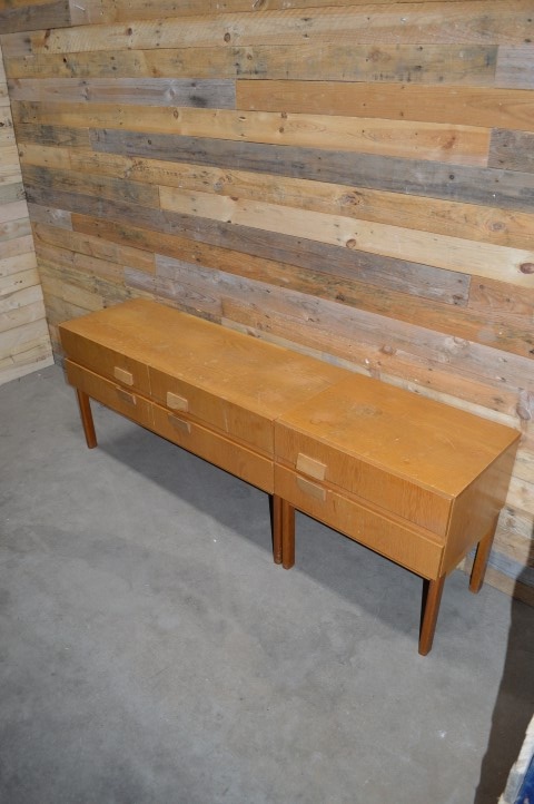 Deze twee fantastisch mooie retro ladekasten uit de jaren 70 kenmerken zich door prachtige houten patronen en fijne handgrepen. De grotere kast is precies twee maal zo groot als de kleine. Ze zijn extreem stabiel, hebben afneembare poten.