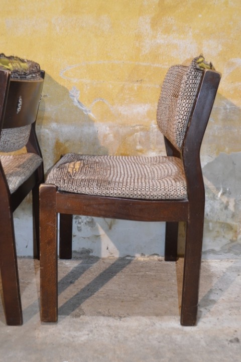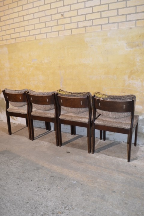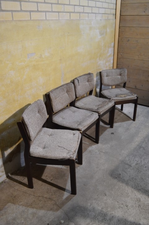 Retro stoelen met een typisch Scandinavisch karakter. Een mooie set met strakke lijnen die met wat aandacht weer volledig tot zijn recht kan komen.
