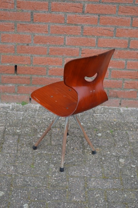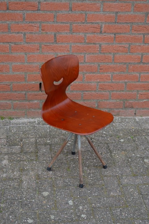 Retro schoolstoeltje voor kinderen zoals die vroeger vaak op school te zien waren. Deze stoel is ideaal voor op de kinderkamer, om mee te spelen, voor aan de keukentafel of een kinderbureau. De stoel heeft gebruikssporen en mist helaas wel een boutje, maar het retro ontwerp blijft een goede keus voor iedereen die een stevige kinderstoel met rugleuning zoekt die wel tegen een stootje kan.