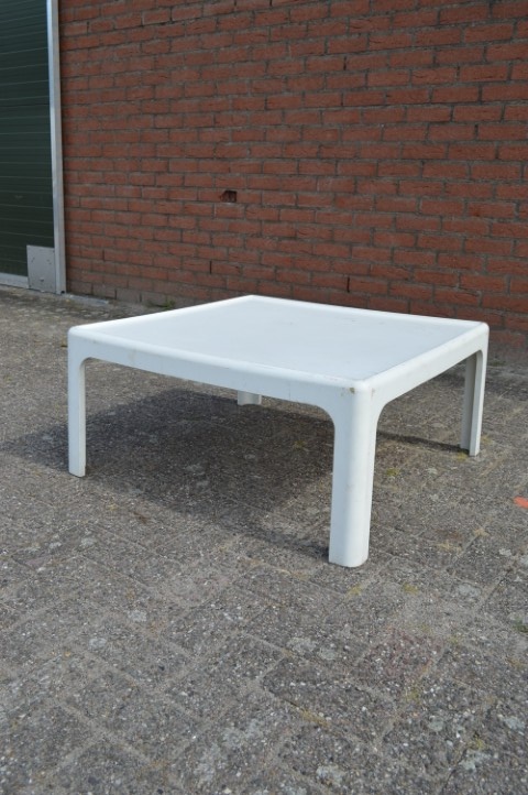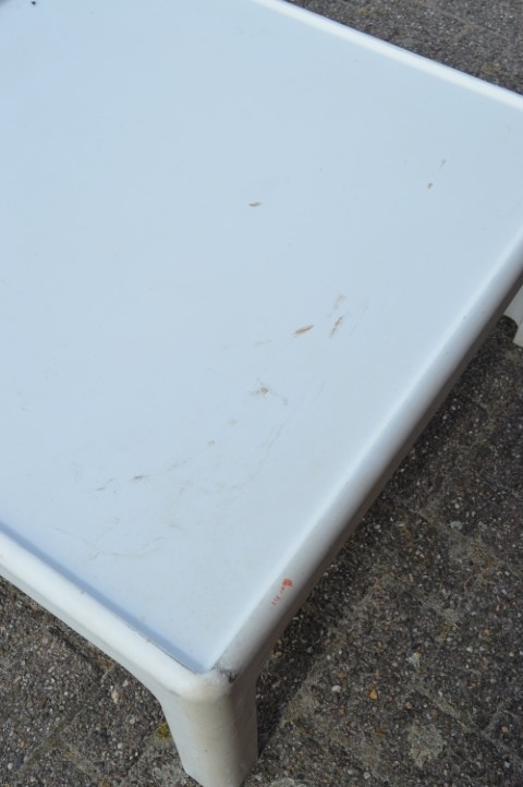 Oorspronkelijk bedoeld als tuinmeubilair, maar inmiddels geliefd als vintage woonaccessoire met karakter. De tafel toont duidelijke gebruikssporen en een doorleefde patina, wat bijdraagt aan de unieke uitstraling. Dankzij het weerbestendige materiaal is deze tafel zowel binnen als buiten te gebruiken: op het terras, in de tuin, in de woonkamer of zelfs in een kinderkamer.