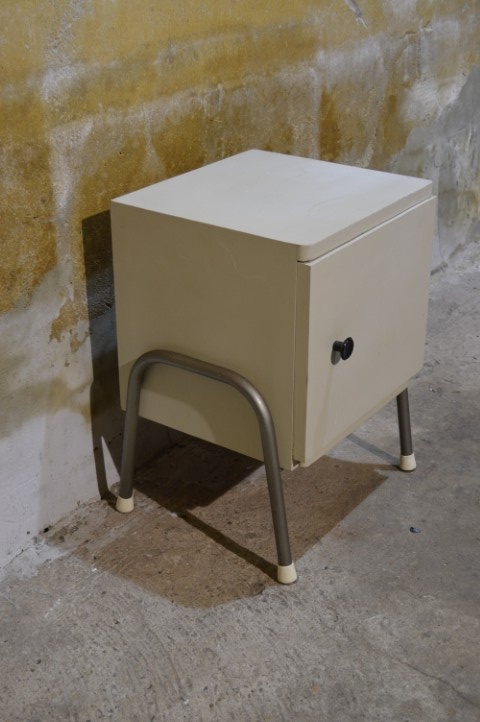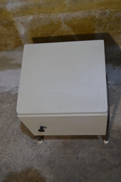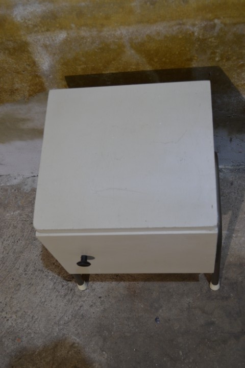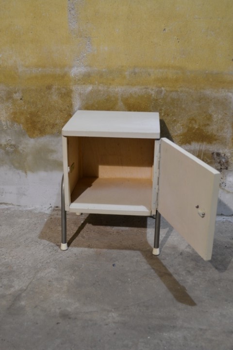 Het kastje is tweedehands en heeft gebruikssporen, passend bij de brocante staat.