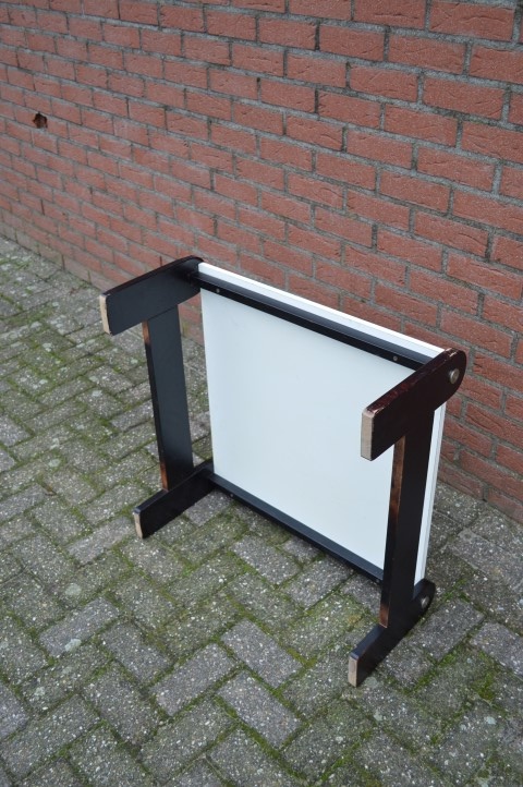 Dit leuke retro salontafeltje is met zijn compacte formaat, strakke ontwerp en de zwart-witte kleurcombinatie een echte blikvanger in elke woonkamer. De salontafel biedt tijdens het televisiekijken genoeg plaats voor uw afstandsbedieningen, drankjes en snacks, maar als u meer van lezen houdt kunt u er natuurlijk tussendoor ook uw krant of magazine op kwijt.