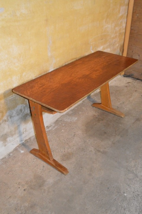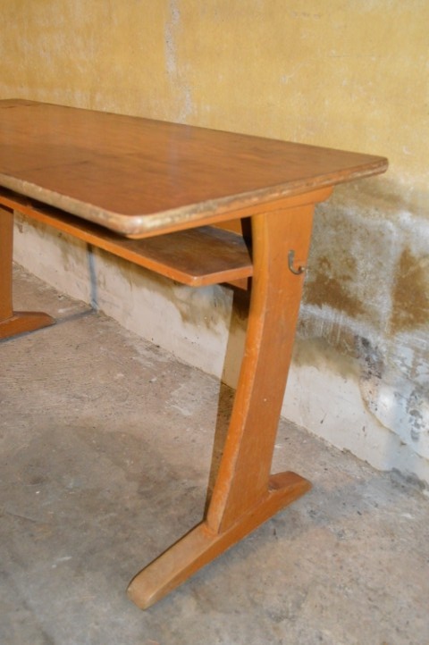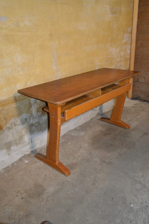 Een uniek stuk schoolmeubilair met geschiedenis – perfect als bureau, werktafel of statement in een interieur.