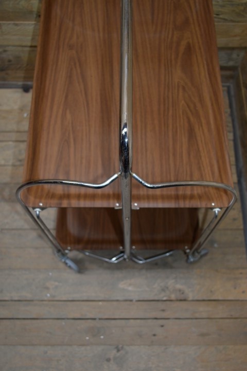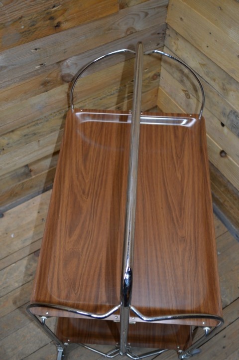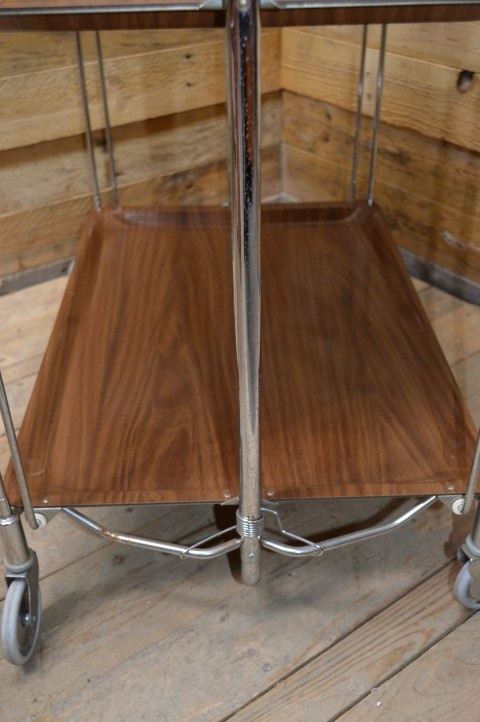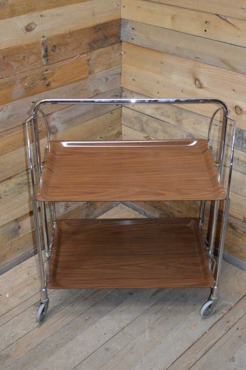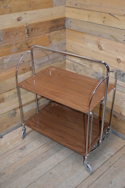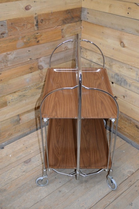 Deze mooie inklapbare retro serveerwagen is ideaal om te gebruiken als bijzettafeltje of als hapjestafel bij een feestje of een gezellig avondje op de bank, maar kan daarnaast bijvoorbeeld ook leuk zijn als extra schappen kastje om spulletjes in op te bergen.