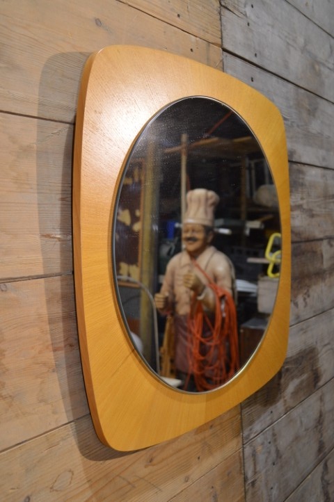 Deze Deense wandspiegel van Aksel Kjersgaard is een bijzonder designstuk uit november 1966.