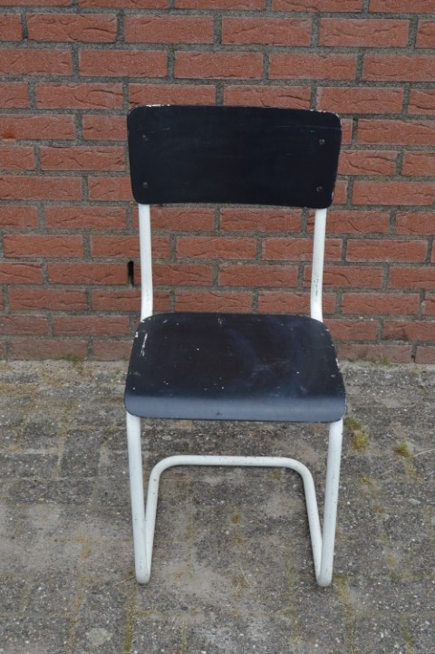 De stoel is in goede staat al zijn er wel wat gebruikssporen, vooral aan de laklaag.