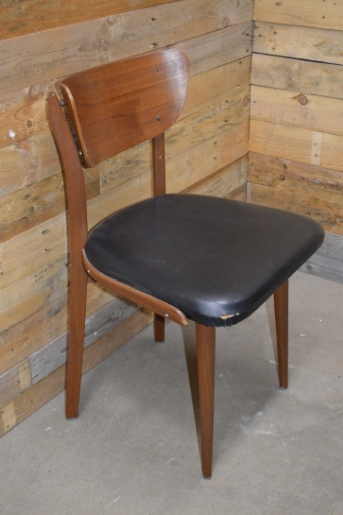 Deze vintage eetkamerstoel is waarschijnlijk ontworpen door de Nederlandse designer Louis van Teeffelen en dateert uit de jaren 60. De stoel is gemaakt van teakhout en heeft zwarte skai bekleding op de zitting. De combinatie van het warme teakhout en het zwarte skai geeft deze stoel een unieke uitstraling die elk interieur een gezellige en warme sfeer zal geven. Deze prachtige tweedehands teakhouten stoel is ideaal voor een eetkamer of kantoor. Het is een echte blikvanger en een aanwinst voor elke liefhebber van vintage meubilair.