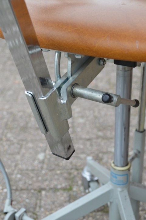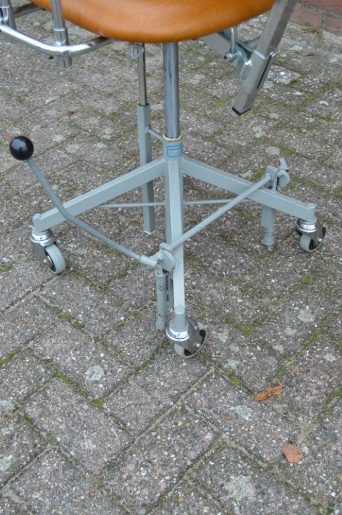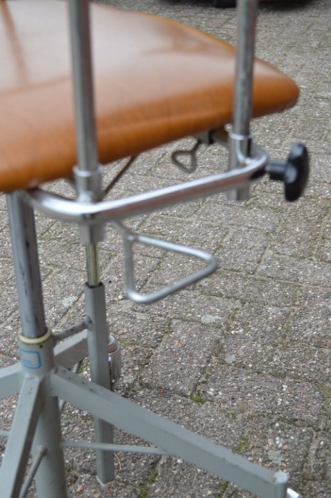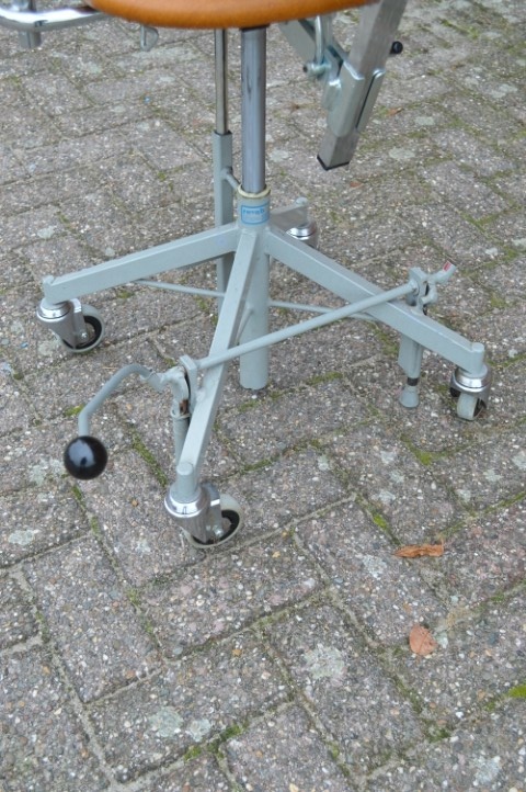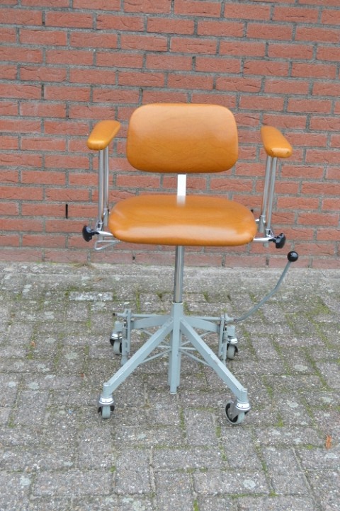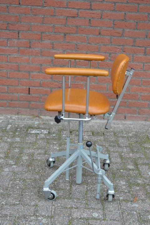 De stoel heeft duidelijke gebruikssporen en de rempootjes vragen mogelijk om afstelling, maar hij is verder stevig en volledig verstelbaar. Een authentieke designklassieker die elke werkruimte karakter geeft.