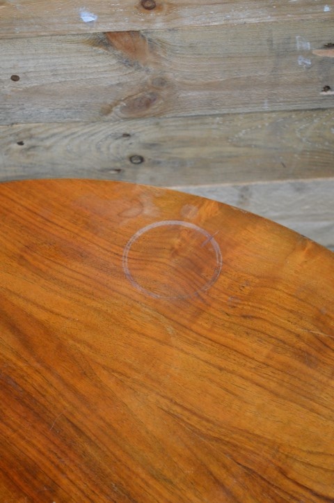 In goede vintage staat met gebruikssporen, het tafeltje heeft enkele kleine vlekken op het hout. De slijtage is passend bij de leeftijd en gebruik van dit meubel.