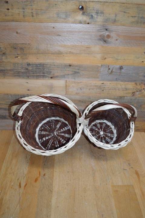 Deze prachtige set van 2 ronde manden met verschillende afmetingen is dankzij de tweekleuren van de wilgentenen waarvan deze manden gevlochten zijn ideaal als decoratie in huis of als tuindecoratie, bijvoorbeeld door ze in combinatie met wat plastic te gebruiken als bloemenmanden. Daarnaast zijn deze wilgentenen manden natuurlijk ook erg leuk om te gebruiken als opbergmanden om andere spulletjes in te bewaren of als boodschappenmandje.