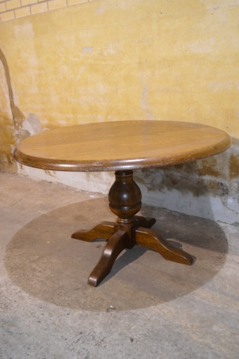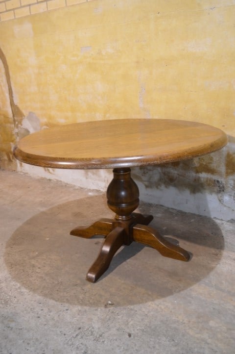 Deze ronde eettafel van massief eikenhout heeft een stevige en robuuste uitstraling. Het massieve eiken zorgt voor een warme en natuurlijke sfeer in huis.