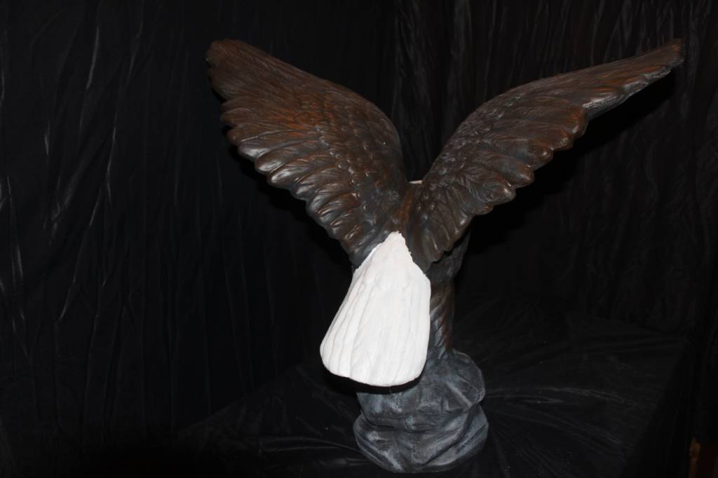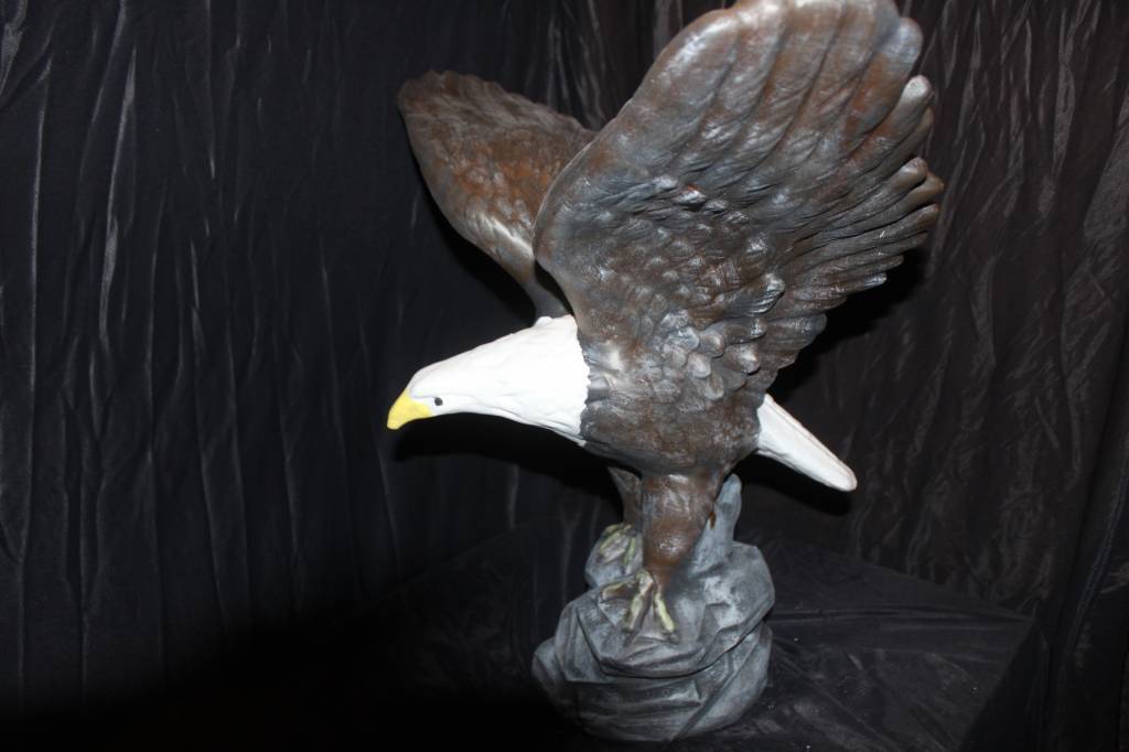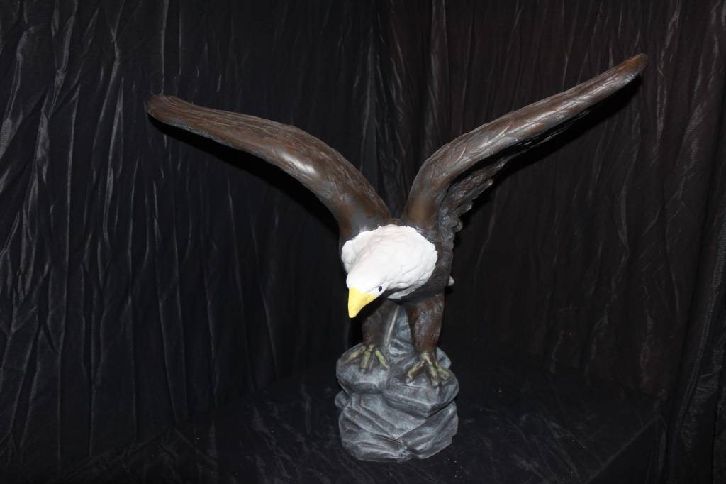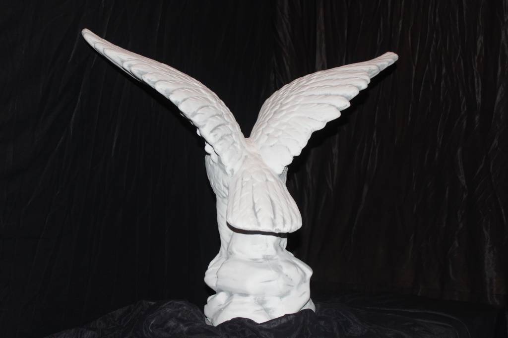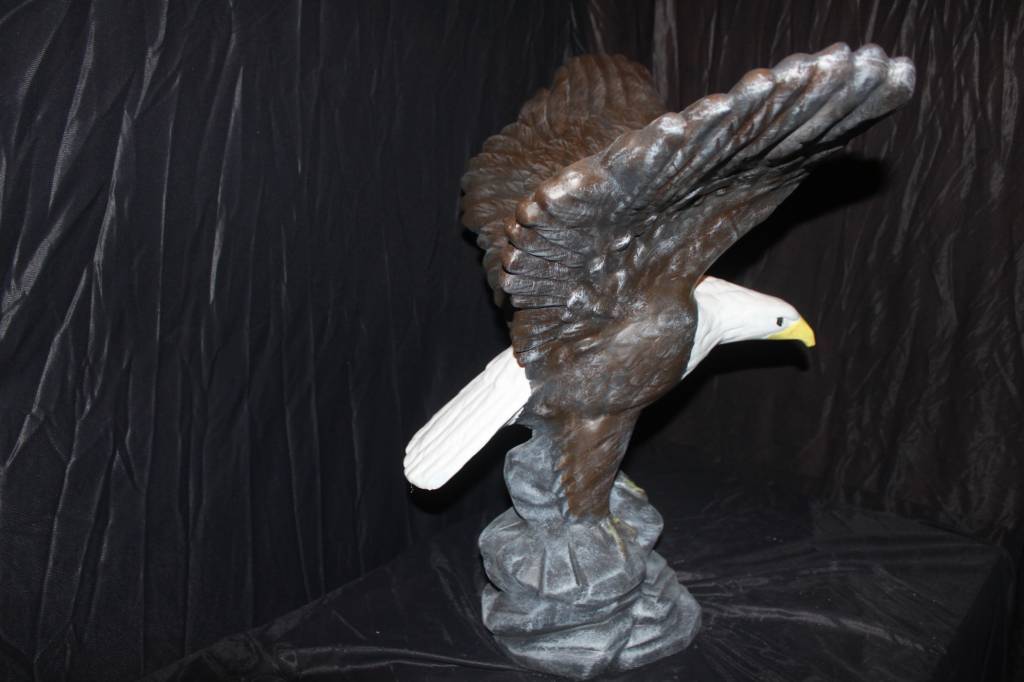 Dit betonnen beeld van een adelaar met gespreide vleugels straalt kracht, alertheid en vrijheid uit. De houding van deze imposante roofvogel suggereert dat hij elk moment kan opstijgen, speurend naar prooi. Betonnen beelden van arenden of adelaars worden vaak geplaatst bij een vijver, op een sokkel langs een oprit of als waakvogel bij een tuinhek. Door de handgeschilderde afwerking lijkt het beeld haast levensecht. Gemaakt van massief beton en geschikt voor buitengebruik in alle seizoenen.