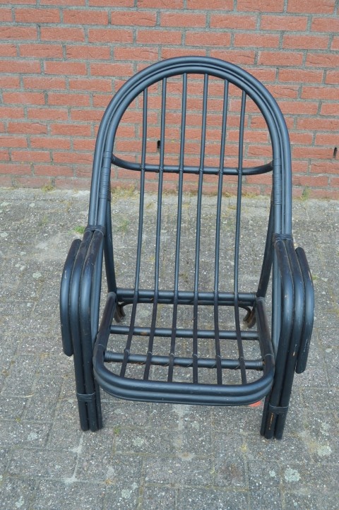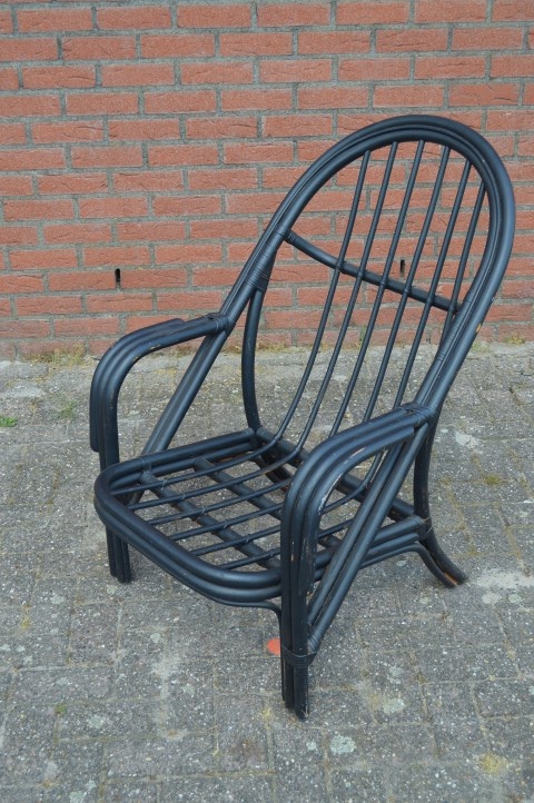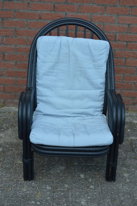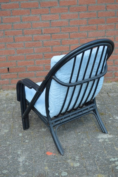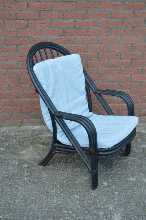 Prachtig, zwart gespoten, rotan armfauteuil met uitneembaar kussen. Deze armstoel van gevlochten rotan is een heerlijk comfortabele toevoeging aan iedere woonkamer of slaapkamer. Een stoel waarin u na een lange dag uitstekend met een boekje of krantje weg kunt zakken. Maar ook uitsatekend te gebruiken als terrasstoel of tuinstoel. Dankzij het elegante ontwerp ziet deze mooie fauteuil met armleuningen er in vrijwel ieder interieur goed uit.