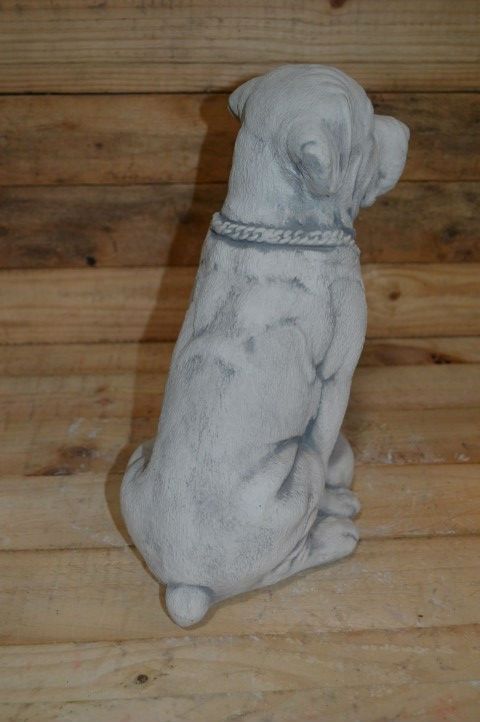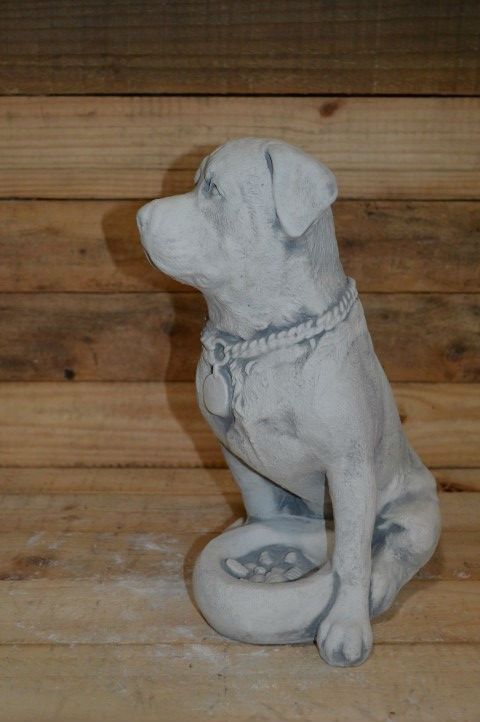 Voeg een trouwe bewaker toe aan uw tuin met dit betonnen Rottweiler beeld. Geduldig en decoratief in zithouding.