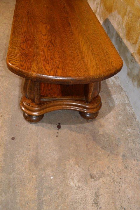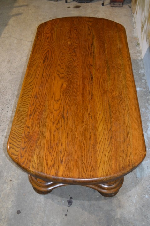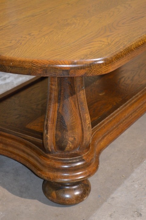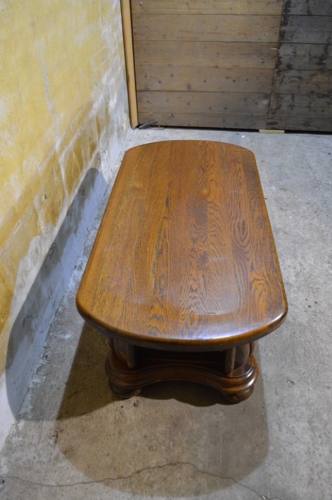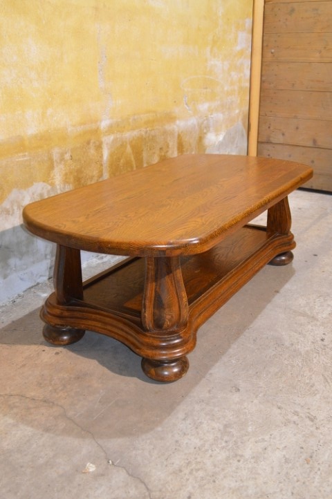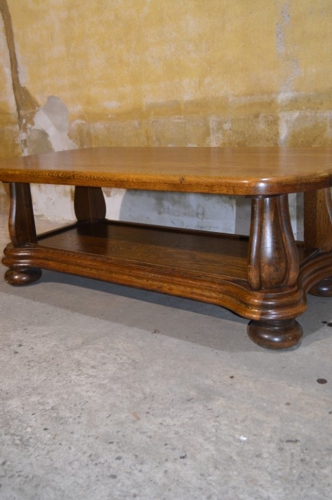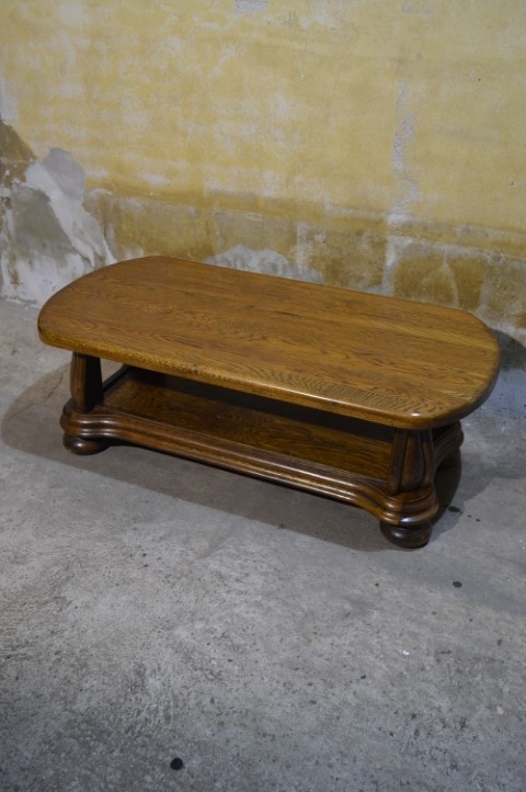 De massief eiken salontafel is gemaakt rond 1970 en uitgevoerd in stevig eikenhout. Het originele ovale blad en de mooi gebogen poten geven de tafel een klassieke en stijlvolle uitstraling. Dankzij het massieve hout voelt de tafel solide en duurzaam aan. De tafel verkeert in zeer goede staat met lichte gebruikssporen passend bij de leeftijd.
