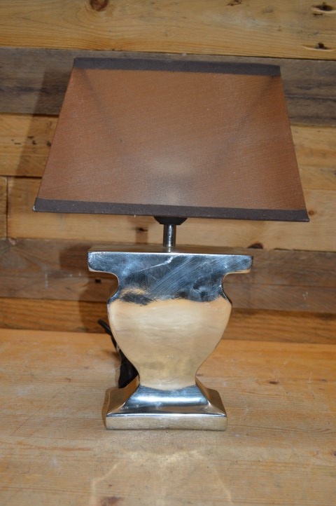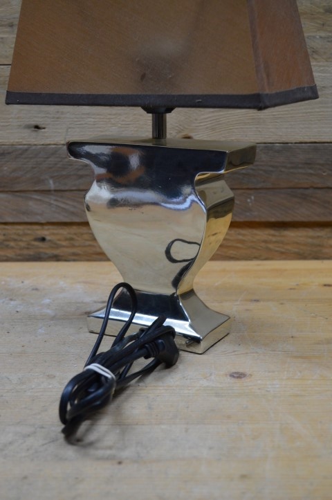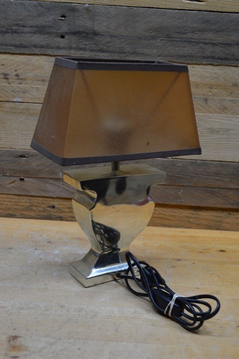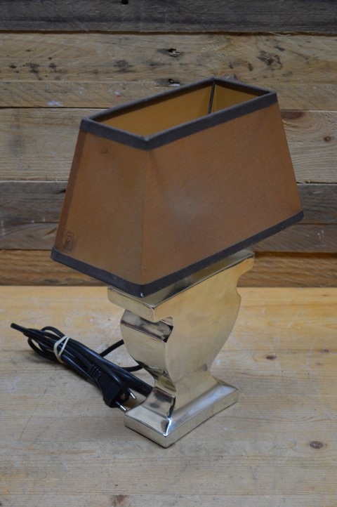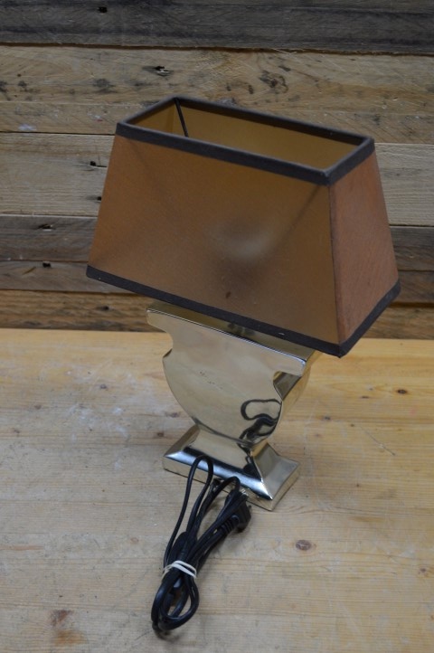 Moderne schemerlamp van Besselink Licht met een metalen poot en een bruin kleurige lampenkap. Leuk voor in de woonkamer of op een nachtkastje. Maar ook op een andere plek of in een andere ruimte zou deze mooie lamp niet misstaan. Door de jaren heen heeft de lamp wel wat kleine gebruiksplekjes opgelopen maar niet te min in het nog een goede tweedehands lamp die nog zeker een ronde mee kan.