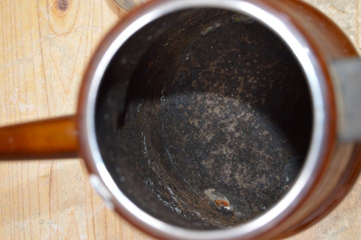 Deze koffiekan heeft in zijn vorige leven wel wat gebruikssporen opgelopen zoals roest aan de binnenzijde, maar is ondanks dat nog zeer goed te gebruiken als een decoratieve kan.