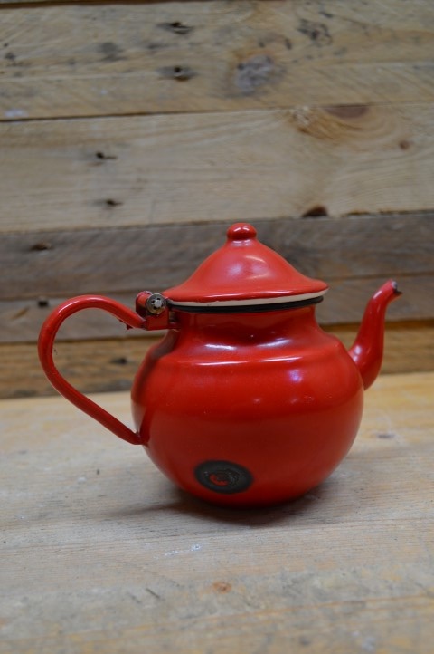 Dit mooie schenkkannetje van rood emaille is ideaal om te gebruiken als melkkannetje, maar kan daarnaast ook goed gebruikt worden om kleine spullen in te bewaren, als decoratief kannetje in huis of om een bloemetje in te planten.