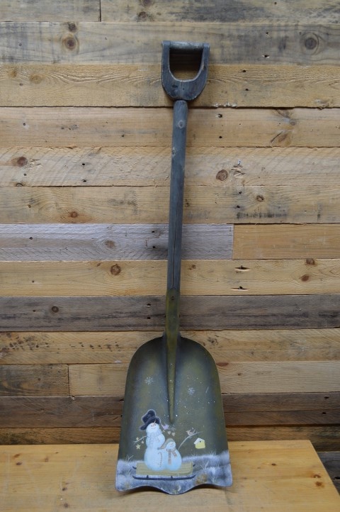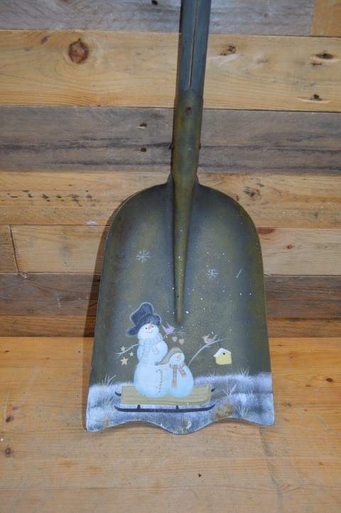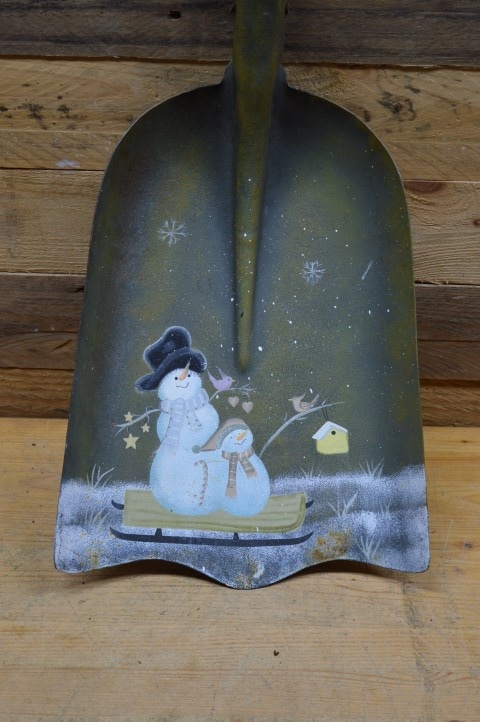 Deze decoratieve schep van metaal is dankzij de winterse schildering van twee sneeuwpoppen op een slee ideaal te gebruiken als wanddecoratie die zowel in huis als in de schuur uitstekend kan hangen.