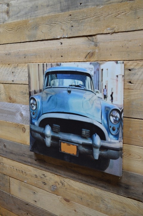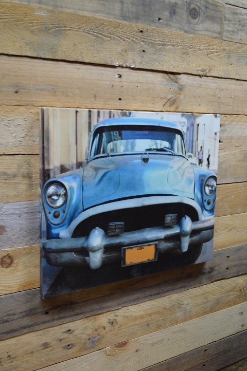 Dit stijlvolle schilderij zonder lijst van een blauwe Amerikaanse auto in Cuba is de ideale wanddecoratie voor in huis. Leuk om bijvoorbeeld in de slaapkamer of woonkamer aan de muur op te hangen, maar deze mooie klassieke Amerikaanse auto kan overal in huis goed hangen en fleurt een saaie muur in een handomdraai op met een mooi canvas schilderij.