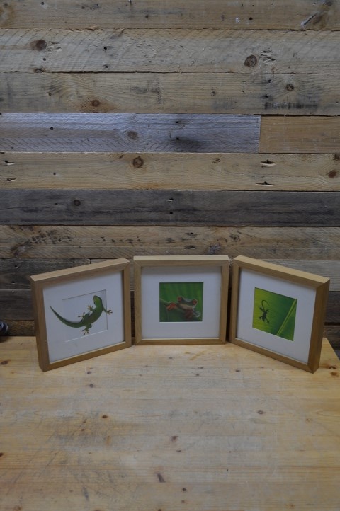 Schilderijlijstjes met daarin afbeeldingen van dieren. Leuke wanddecoratie of leuk om op een kastje neer te zetten.