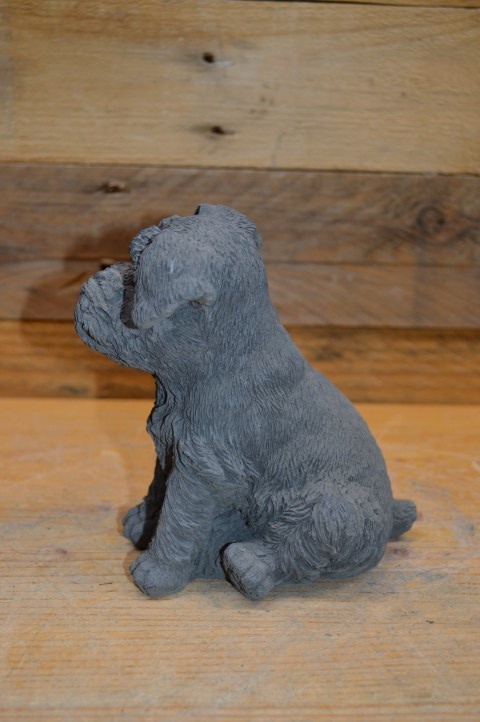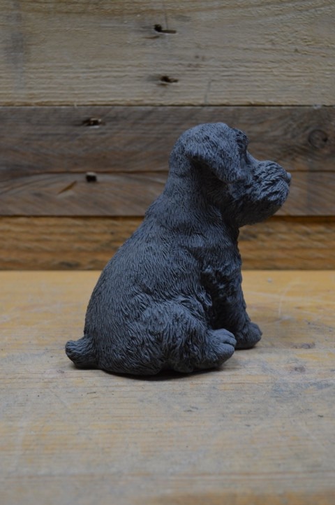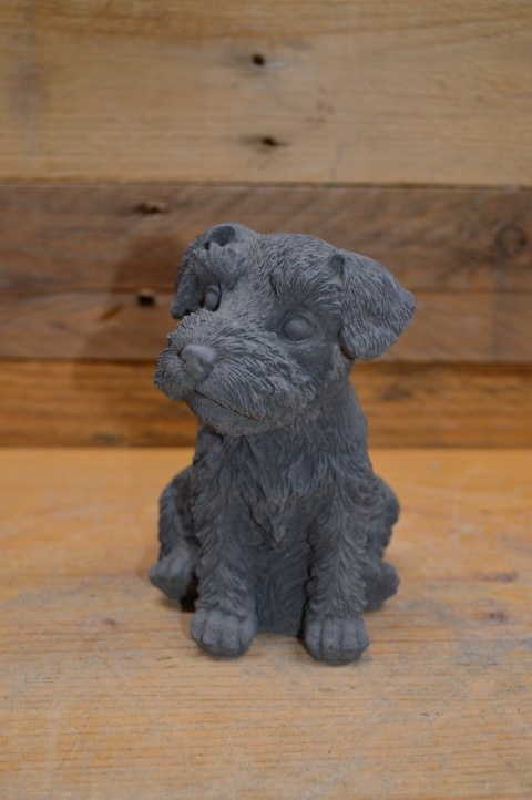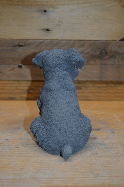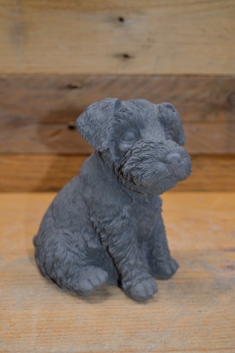 Deze lieve zittende Schnauzer van beton is een mooi beeldje voor iedere hondenliefhebber. Dankzij zijn vriendelijke uitstraling en compacte formaat is hij leuk als tuindecoratie, maar past hij ook perfect binnen – bijvoorbeeld op de vensterbank, bij de open haard of in de hal. Het beeld is gegoten uit duurzaam beton (gietsteen) en kan dus zowel binnen als buiten staan. Een sfeervol en tijdloos figuur dat een glimlach oproept bij jong en oud.