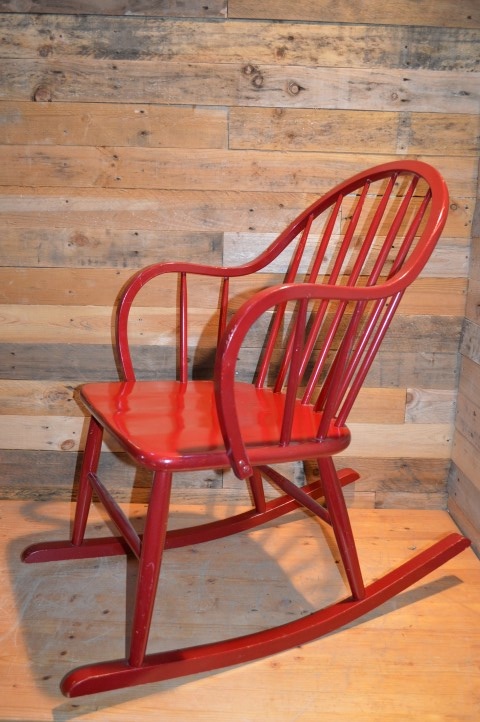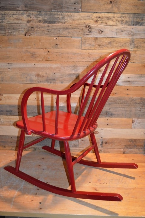 Unieke Edsby verken Zweeds design schommelstoel in originele en zeer goede staat. Dit model kom je zelden tegen. Met de bekende gebogen rugleuning met spijltjes en in een mooie rode kleur. Het houtwerk is van beukenhout. Deze is ontworpen en geproduceerd in de jaren 50 - 60.