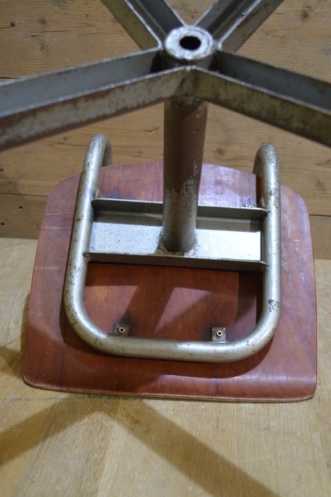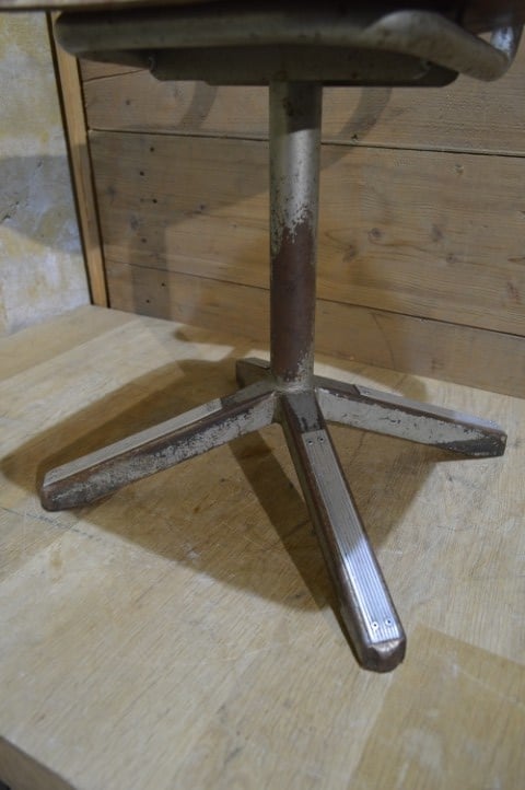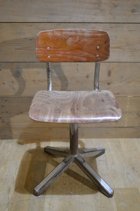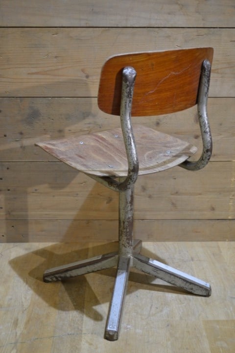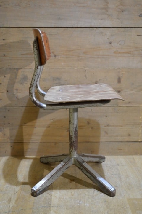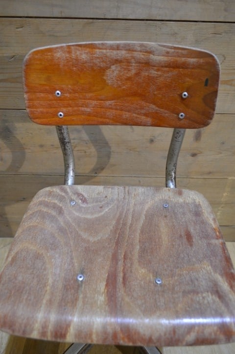 Dit tweedehands schoolstoeltje met houten zitting en metalen frame is een compact en karaktervol zitmeubel. De combinatie van hout en metaal geeft het stoeltje een herkenbare en tijdloze uitstraling. Geschikt als extra zitplaats of decoratief item in huis. Het stoeltje is tweedehands en heeft een geleefde uitstraling met gebruikssporen, passend bij de leeftijd.