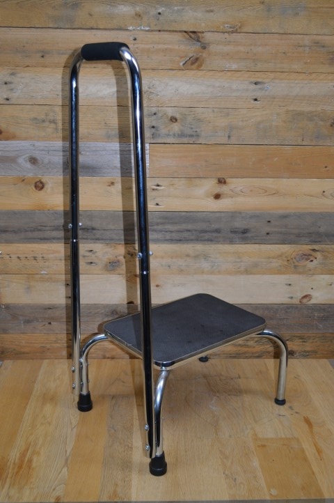 Mooi tweedehands senioren opstapje voor in de keuken of om bij de hoge kastjes in een badkamer of slaapkamer te kunnen. Een super handig huishoudhulpje dat erg stabiel is door de vier pootjes met anti-slip voetjes. De handgreep van dit senioren hulpmiddel heeft een hoesje dat een beetje stroef is waardoor je meer grip hebt.