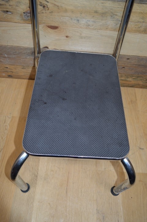 Het is natuurlijk wel een tweedehands opstapje of huishoud trapje met wat krasjes en andere kleine gebruikssporen.