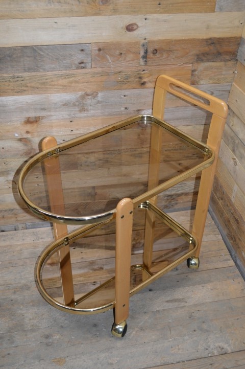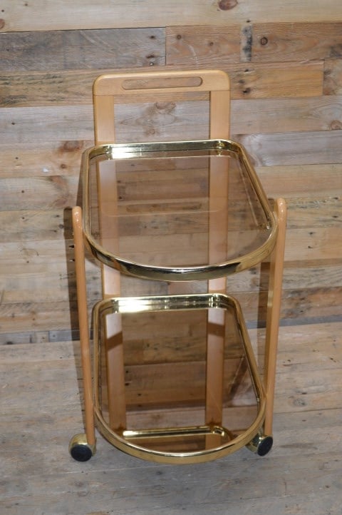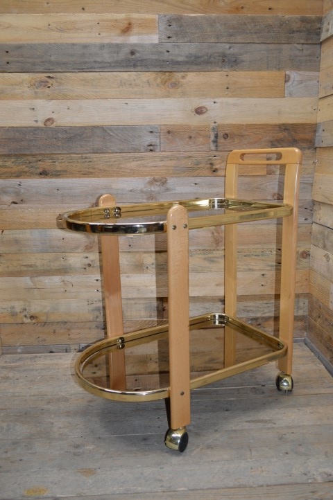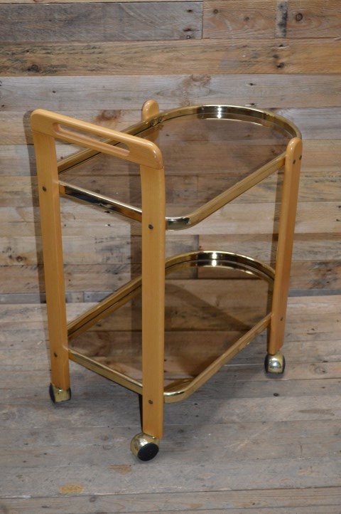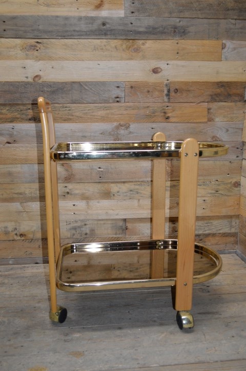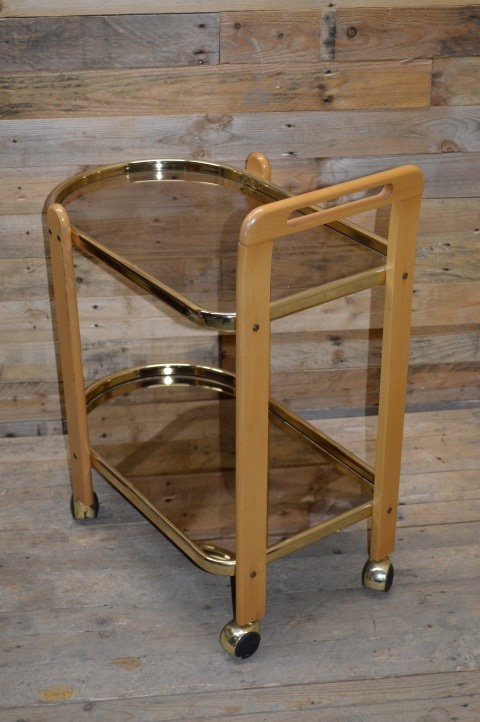 Omdat de serveerwagen al eerder gebruikt is zijn er enige gebruikssporen achtergebleven, maar deze mooie trolley is ondanks zijn staat van dienst nog steeds uitstekend te gebruiken in de keuken of woonkamer.