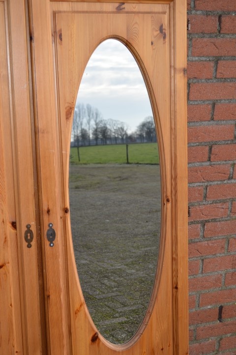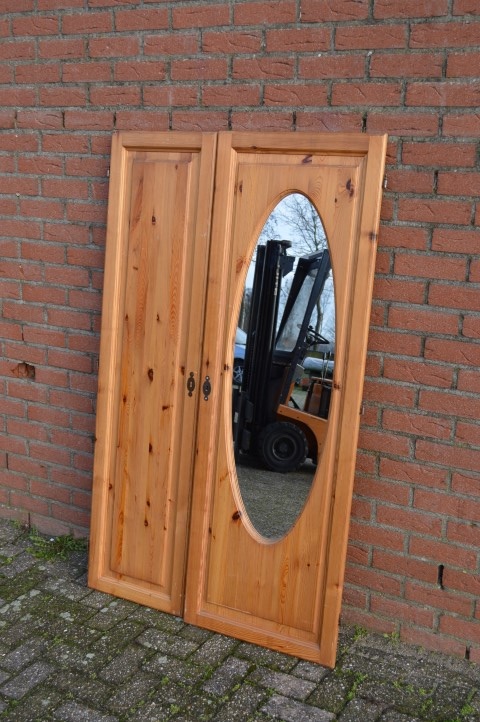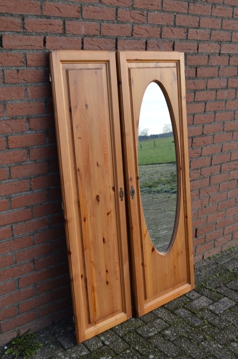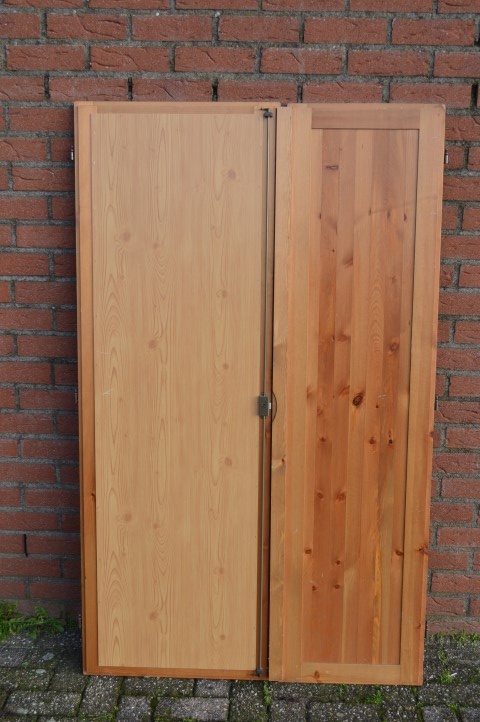 Set kastdeuren, links en rechts, van massief grenenhout.